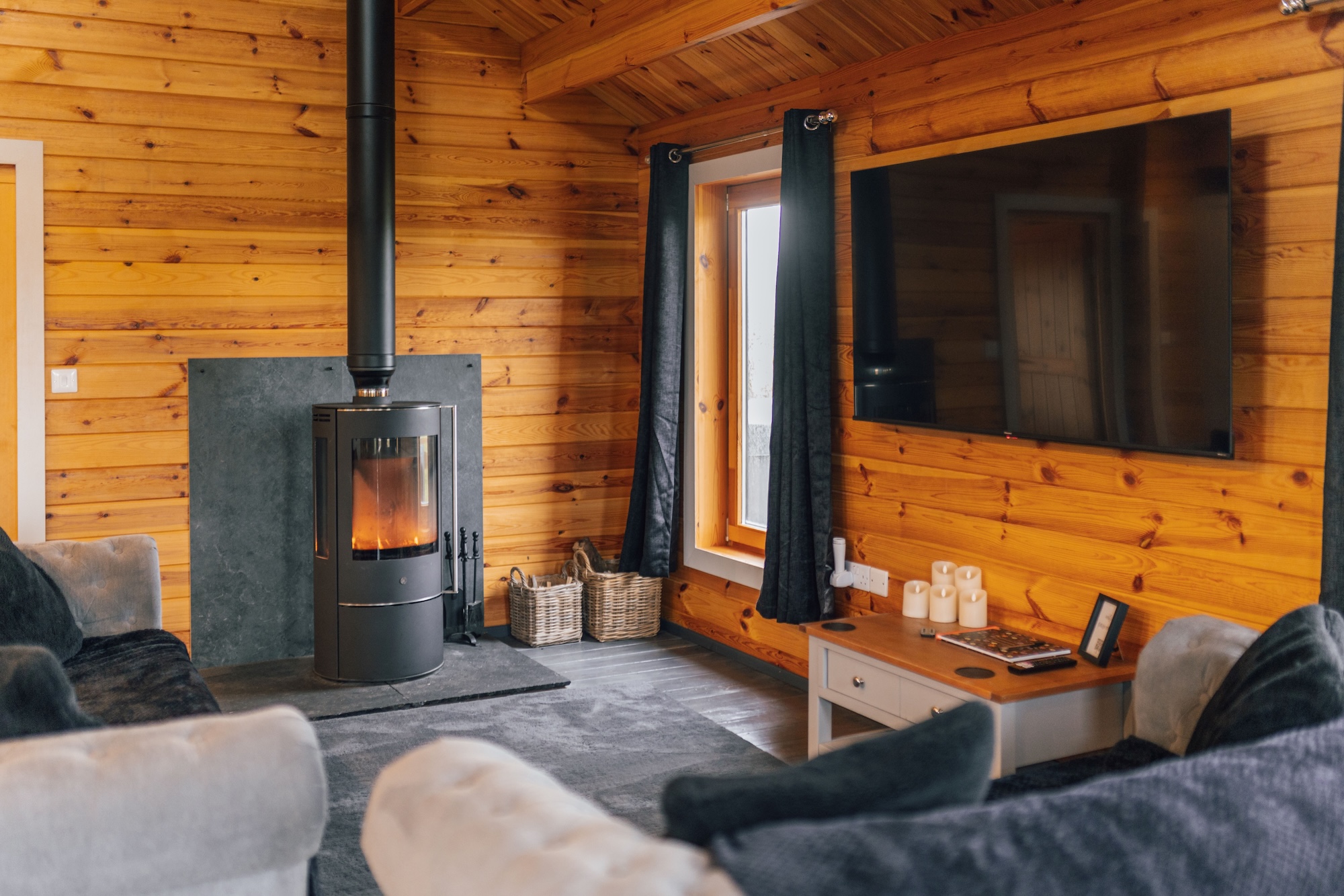 Step inside and discover a bright and airy open-plan living and dining area, complete with a 65 inch smart TV, a fully equipped kitchen, wood-burning stove and real wooden floors.